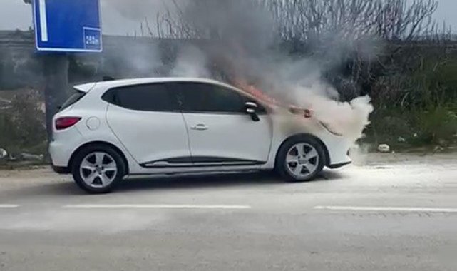 Alev alan otomobilin yardımına itfaiye ekipleri yetişti