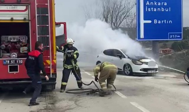 Olay, Kirkille Mahallesi mevkiinde meydana geldi. Yaşar Çağrı Öztürk idaresindeki 78 AAP 021 plakalı otomobil seyir halindeyken motor kısmından henüz bilinmeyen bir nedenle alev aldı. Sürücü yolun kenarına bıraktığı aracı terk ederek durumu itfaiye ekiplerine bildirdi. Kısa sürede olay yerine gelen ekipler yangını büyümeden söndürdü. Maddi hasar oluşan yangınla ilgili inceleme başlatılırken aracın kiralık olduğu öğrenildi.