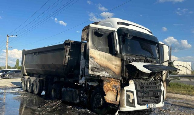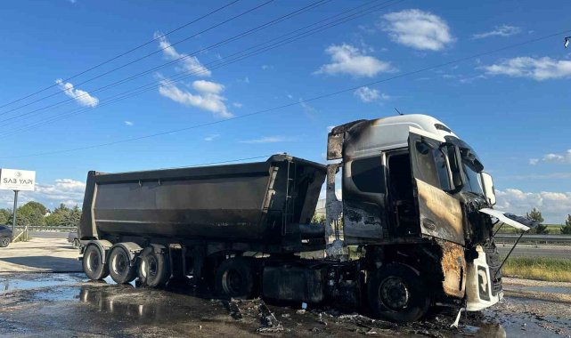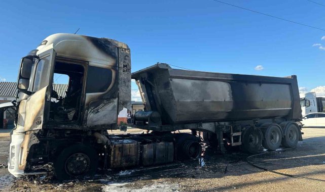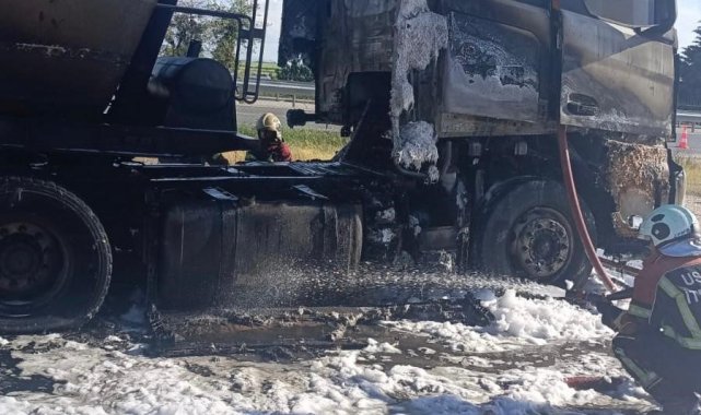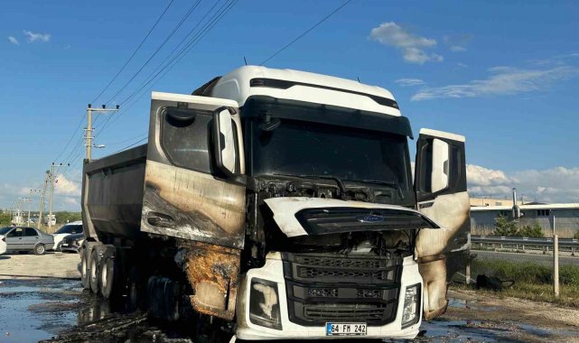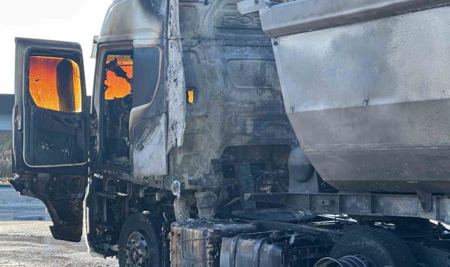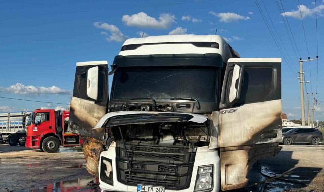 Uşak'ta park halindeyken alev alarak yanan tır kullanılamaz hale geldi.