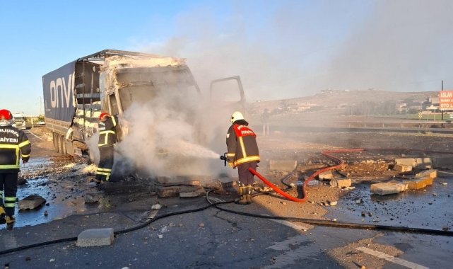 Yangın nedeniyle tırda maddi hasar meydana geldiği öğrenildi.