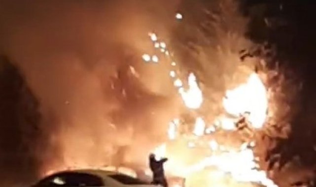 Alev alev yanan otomobil kullanılamaz hale geldi