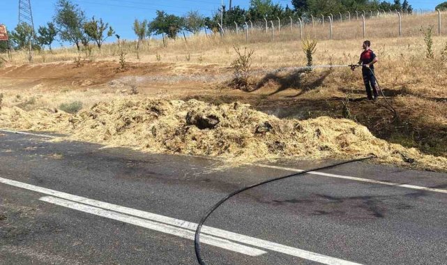 Bilecik'in Pazaryeri ilçesinde tarladan toplanan saman balyalarını taşıyan Adem K. idaresindeki traktörün römorkunda henüz belirlenemeyen bir nedenle yangın çıktı. Alevler kısa sürede saman balyalarını sardı, ortalık bir anda dumanla kaplandı. Yangını fark eden çevredeki vatandaşlar, ilk müdahaleyi yaparak alevlerin büyümesini engellemeye çalıştı. Olay yerine hızla Pazaryeri Belediyesine bağlı itfaiye ekipleri ile polis ekipleri sevk edildi. Kısa sürede olay yerine ulaşan itfaiye, yangını çevreye sıçramadan kontrol altına alarak söndürdü.