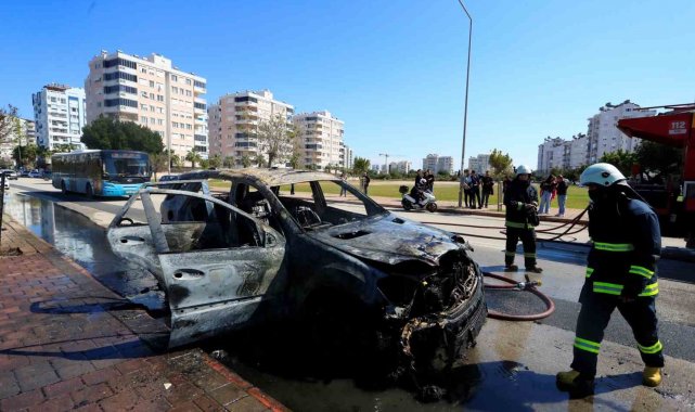 Olay, saat 11.00 sıralarında Konyaaltı ilçesi Çamlık Caddesi üzerinde meydana geldi. Edinilen bilgiye göre, 07 SG 189 plakalı Mercedes marka otomobilliyle seyreden sürücü Salih Türk (55), arka taraftan dumanların çıktığını fark edince aracı yol kenarına park etti. Türk, içerisini dumanların kapladığı otomobilden veterinere kontrole götürdüğü kedisini de alarak kendini dışarı attı. Alevler bir anda aracı kapladı. Araç sahibi ve çevredeki vatandaşların yangın tüpleri ile müdahalesi alevleri sönürmeye yeterli olmadı. İhbar üzerine adrese Antalya Büyükşehir Belediyesi İtfaiye Daire Başkanlığı ekipleri sevk edildi. Kısa sürede adrese gelen ekipler alev topuna dönen araca müdahale etti. Ekiplerin yaklaşık yarım saatlik müdahalesi ile yangın tamamen söndürülürken otomobil ise tamamen kullanılamaz hale geldi.