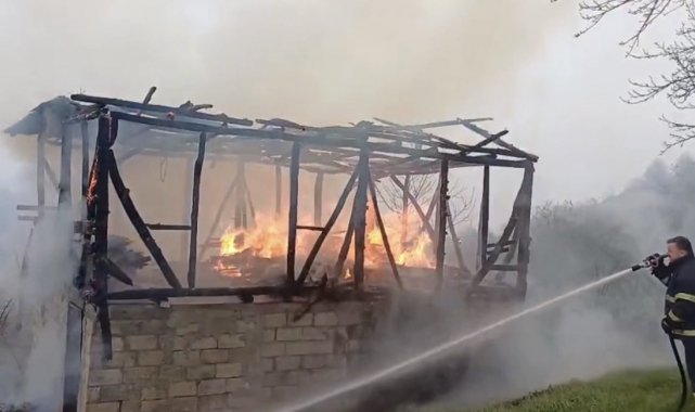 Düzce'de bayram arifesinde ardiye olarak kullanılan yapı alev alev yandı.