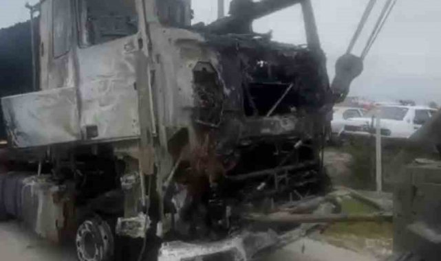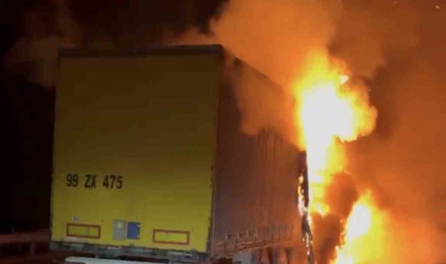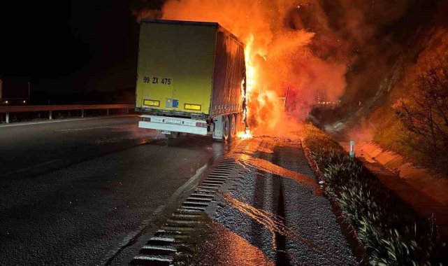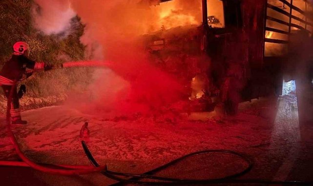 İhbar üzerine olay yerine gelen itfaiye ekipleri yangına müdahale ederek söndürdü ancak tır tamamen yanarak geriye demir yığını kaldı.