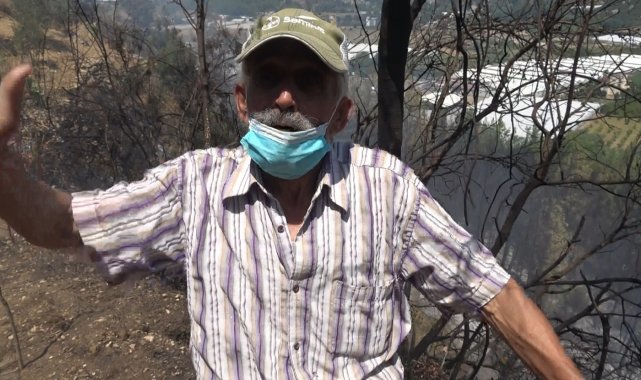 Antalya'nın Aksu ilçesinde çıkan orman yangınında itfaiye ve orman ekiplerinin haber vermesiyle evinden kaçan yaşlı adam, "Yangın evimin dibine kadar geldi. Eğer haber vermeselerdi kaçamazdım. Amca kaç dediler, onlar da kaçtı ben de" dedi.