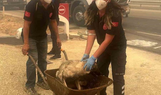 Kamyonlara konulan büyükbaş hayvanlar uzaklaştırıldı. Ayrıca ekipler bir köpeği de alevlerden kurtarıp el arabasıyla uzaklaştırdı.