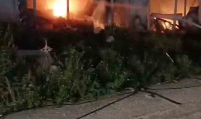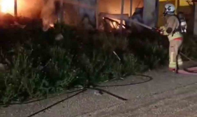 Hatay'da içerisinde yaşayan vatandaşların bir süre önce tahliye edildiği 2 konteyner alev alev yanarak kullanılmaz hale geldi.