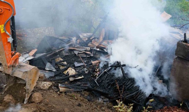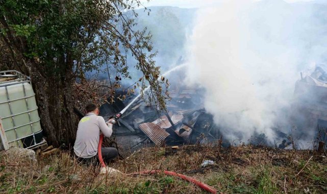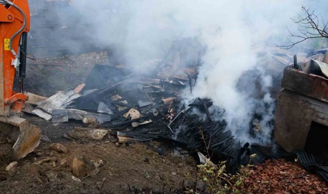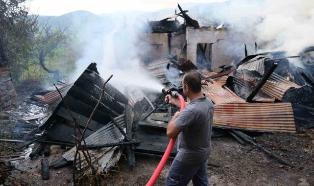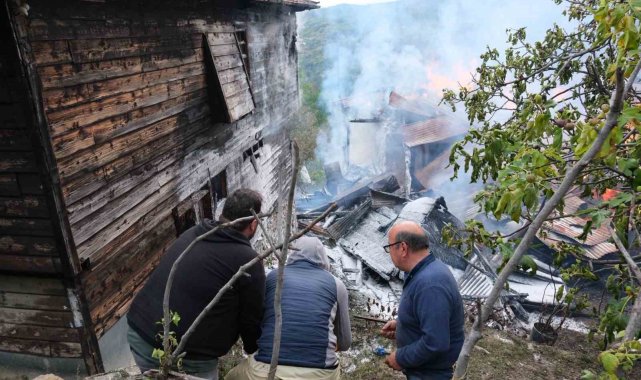 Kastamonu'nun Bozkurt ilçesinde çıkan yangında iki katlı ahşap ev yanarak kullanılamaz hale geldi.