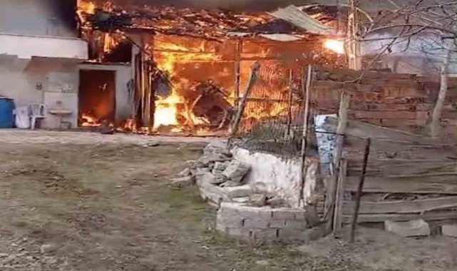 Çorum'un Osmancık ilçesinde çıkan yangında bir ev ve ahır kullanılmaz hale geldi.