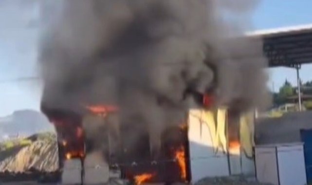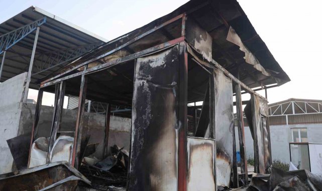 Hatay'da alevlere teslim olan konteyner kullanılamaz hale geldi.