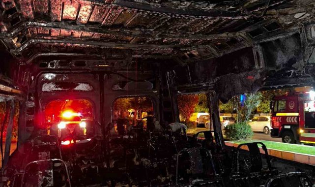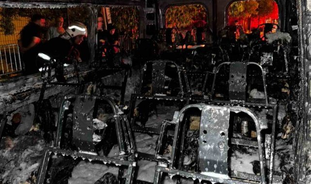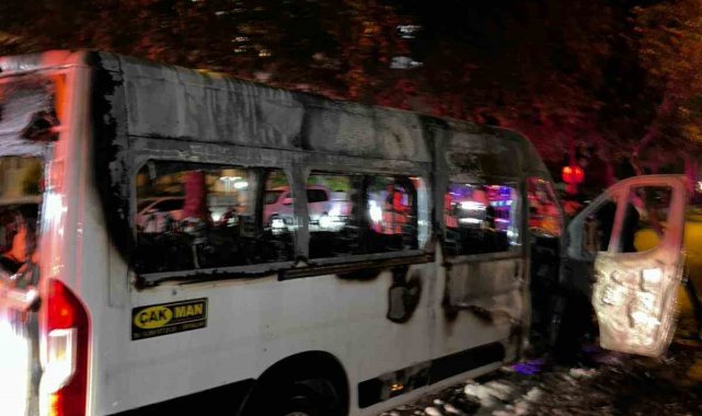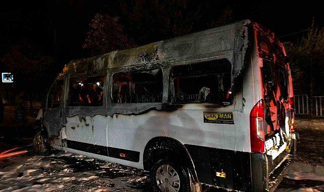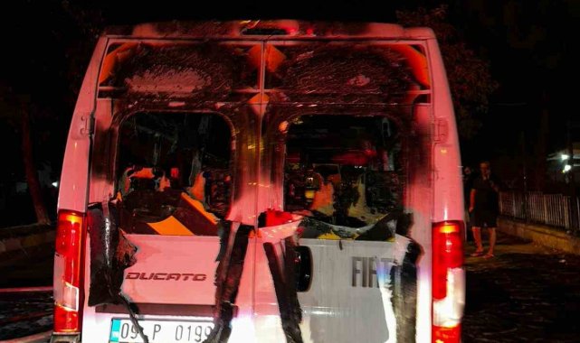 Alevlere teslim olan okul taşıtı demir yığınına döndü