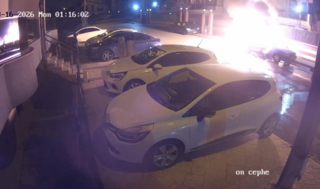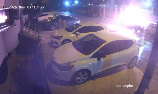 Kocaeli'nin Derince ilçesinde gece saatlerinde park halindeyken dumanlar yükselen otomobil, dakikalarca yandı. Sahibi olduğu düşünülen kişinin kapıyı açmasıyla alevlerin bir anda tüm aracı sardığı ve ufak çaplı patlamaların yaşandığı o anlar güvenlik kamerasına saniye saniye yansıdı.
