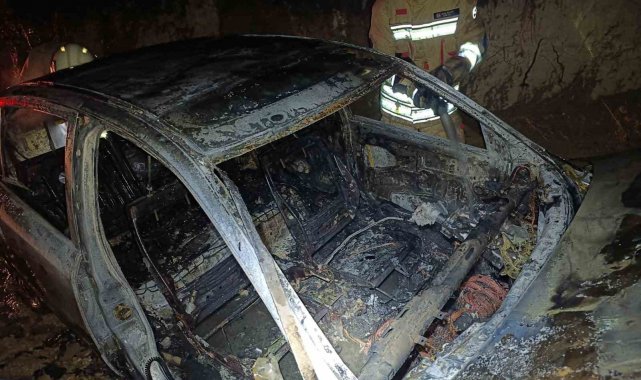 Alevlere teslim olan otomobil kullanılmaz hale geldi