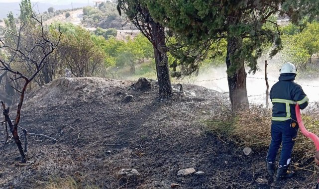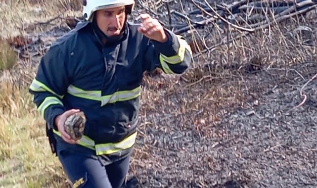 Hatay'da çıkan yangında alevlerin arasında kalan kaplumbağanın imdadına itfaiye yetişti.