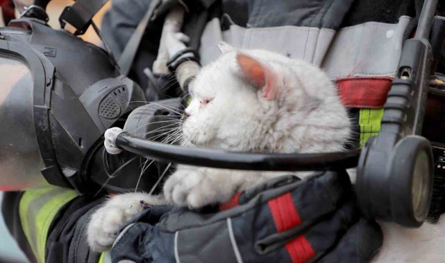 Alevlerin arasından kurtarıldı: İtfaiye hamile kediyi sağ salim çıkardı
