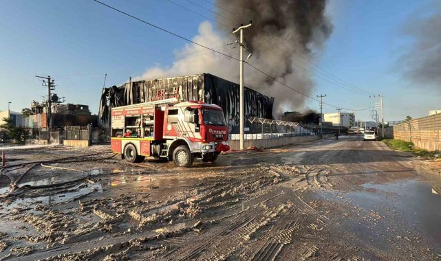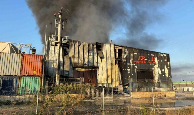 Yangın, 3 saatlik müdahalenin ardından kontrol altına alındı. Ekipler depoda soğutma çalışması gerçekleştiriyor.