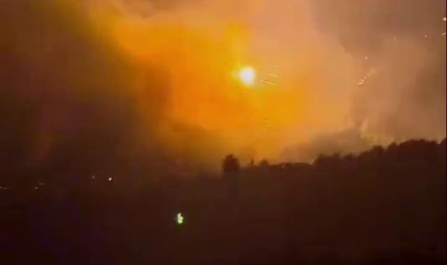 Hatay'da orman yangını esnasında alevlerin sardığı yüksek gerilim hattının bomba gibi patlamasıyla yaşanan panik cep telefonu kamerasına yansıdı.