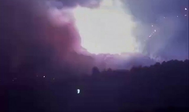 Alevlerin sardığı yüksek gerilim hattı bomba gibi patladı