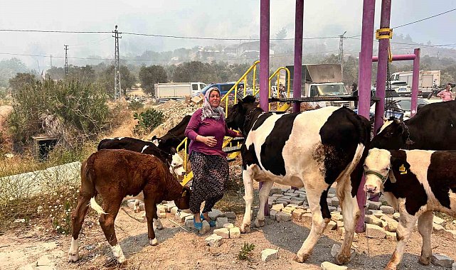 Hatay'da yaşanan orman yangını ahırına sıçrayan Müzeyyen Doğru, hayvanlarını ekiplerin yardımıyla güvenli alana taşıdı.