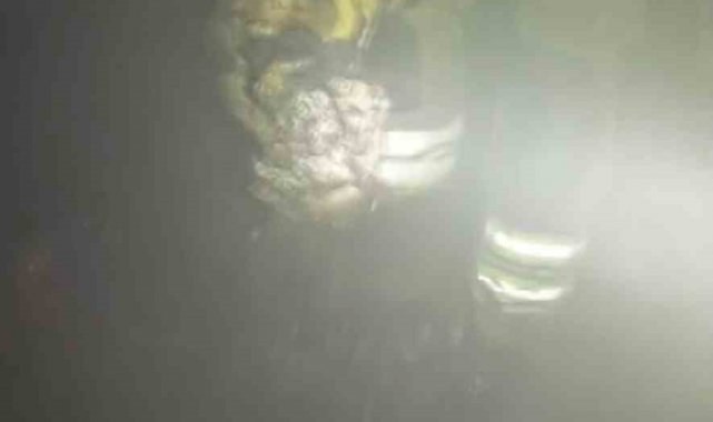 Alevlerin yükseldiği evde mahsur kalan kediyi itfaiye kurtardı