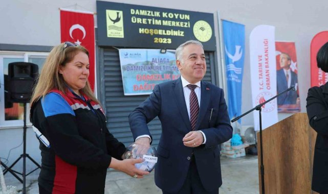 Küçükbaş hayvan üretiminin artırılması ve üreticilerin ekonomik olarak desteklenmesi amacıyla Aliağa Belediyesi ile İzmir İl Tarım ve Orman Müdürlüğü iş birliğinde Çoraklar Mahallesi'nde projelendirilen 'Damızlık Koyun Üretim Merkezi'nde ilk koç dağıtımı gerçekleştirildi.