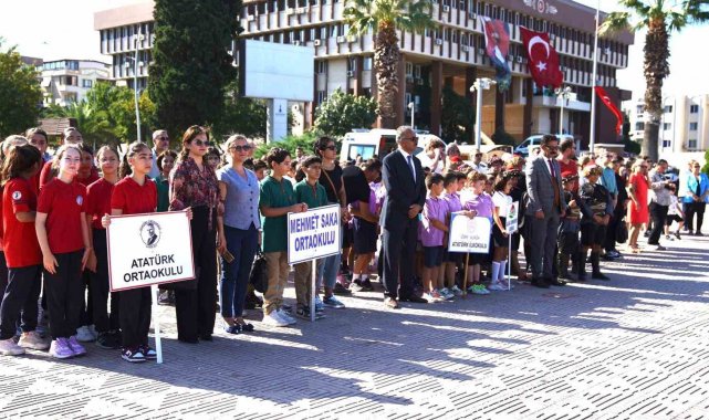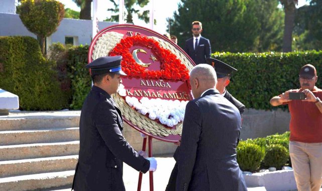 Program; Kaymakamlık Makamı, Garnizon Komutanlığı, Belediye Başkanlığı çelenklerinin Atatürk Anıtına sunumu ile başladı. Saygı duruşu ve İstiklal Marşı'nın okunmasının ardından günün anlam ve önemine ilişkin konuşmayı Aliağa Belediye Başkan Yardımcısı Mesut Öztürk yaptı.