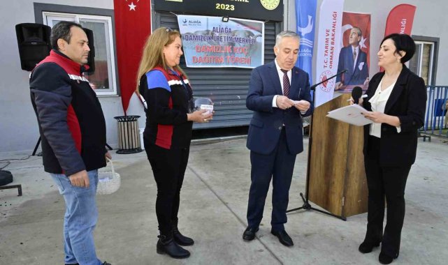 İzmir'in Aliağa ilçesinde, Damızlık Kıvırcık ve Merinos Koyunculuk Tesisi Projesi kapsamında 50 adet pedigrili damızlık koç yetiştiricilere teslim edildi.