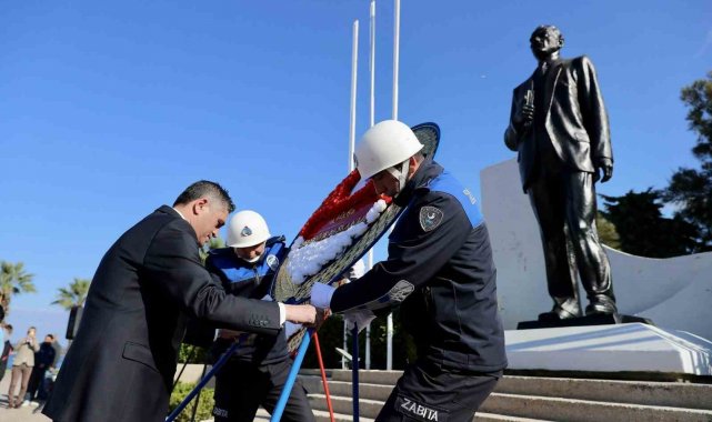 Gerçekleştirilen resmi törende Aliağa Kaymakamlığı, Garnizon Komutanlığı, Belediye Başkanlığı ile Gaziler Derneği Atatürk Anıtına çelenk sundu. Çelenk sunumu sonrası saygı duruşunda bulunularak İstiklal Marşı okundu.