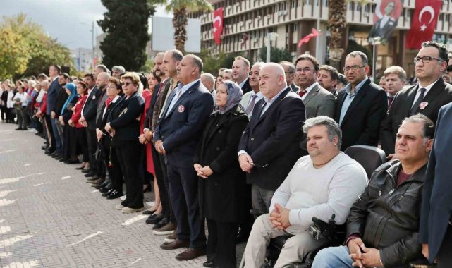 Aliağa'da 29 Ekim Cumhuriyet Bayramı kutlamaları Cumhuriyet Meydanı'ndaki Atatürk Anıtına çelenk sunum töreniyle başladı. Aliağa Kaymakamlığı tarafından düzenlenen törende; Aliağa Kaymakamı Zekeriya Güney, Aliağa Belediye Başkanı Serkan Acar ve Garnizon Komutanı Albay Ali Güler, Atatürk Anıtı'na çelenk sundu. Törene ayrıca Aliağa Cumhuriyet Başsavcısı Serkan Başaran, kurum müdürleri, askeri erkan, belediye meclis üyeleri, muhtarlar, siyasi parti ve sivil toplum kuruluşu temsilcileri, şehit aileleri, gaziler, öğretmenler, öğrenciler ve vatandaşlar katıldı. Çelenk sunumunun ardından saygı duruşunda bulunularak İstiklal Marşı okundu. Cumhuriyet Bayramı'nın ilk gün programı, Aliağa Kabristanlığı'ndaki şehitlik ziyaretiyle sona erdi.