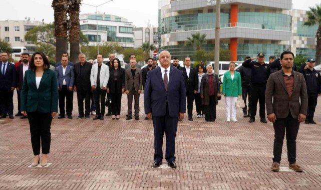 Cumhuriyet Meydanı'nda düzenlenen çelenk sunma programına, Aliağa Belediye Başkan Yardımcısı Mesut Öztürk, Aliağa Muhtarlar Derneği Başkanı Fatma Divrik, muhtarlar, siyasi parti temsilcileri ile kurum müdürleri katıldı.