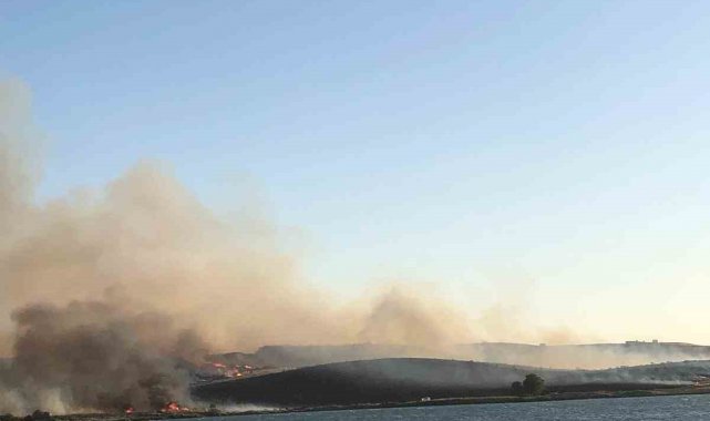 İzmir'in Aliağa ilçesinde otluk alanda çıkan yangın, rüzgarın etkisiyle hızla büyüdü.