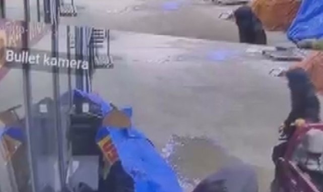 Hatay'da prefabrik çarşıya elektrikli motosikletle gelen hırsızların, ayakkabıları numaralarına bakarak iş yeri önündeki ayakkabıları çaldıkları anlar kameraya yansıdı. Çalınan ayakkabılar nedeniyle yaklaşık 50 bin TL zarara uğrayan esnaf Mehmet Şerif Taş, hırsızların bir an önce yakalanmasını istedi.