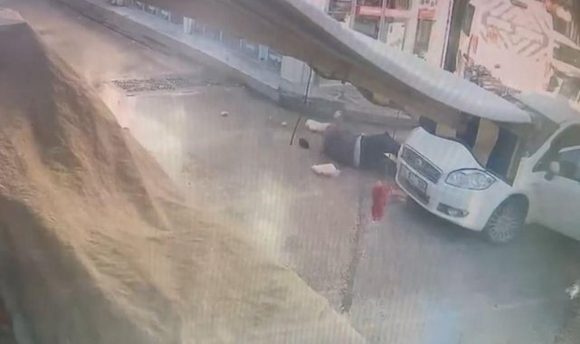 Bursa'da alışveriş yaptıktan sonra yolun karşısına geçmek isteyen yaşlı adam, otomobilin çarpmasıyla savruldu. Kaza anı kameraya yansırken, aracın altında kalan adamın ayağı kırıldı.