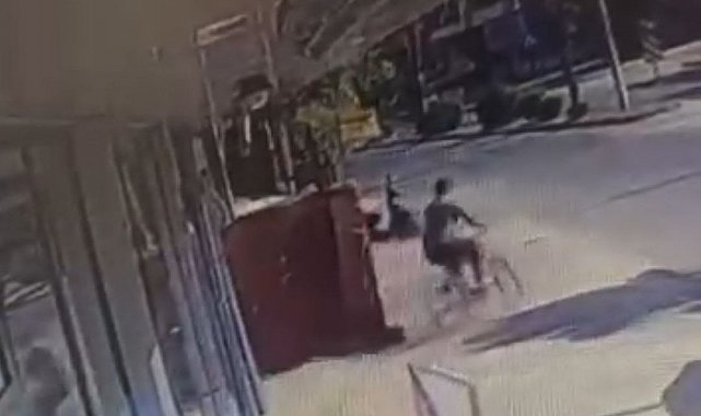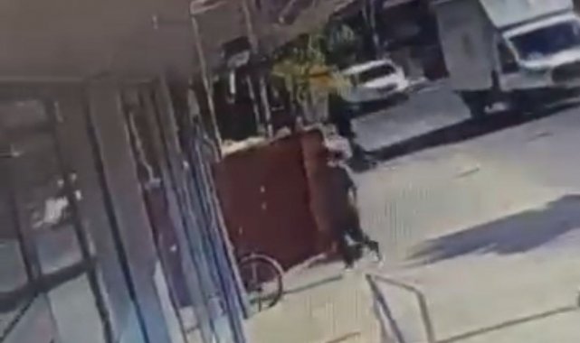 Şüphelinin bisikleti sürerek olay yerinden ayrılması anbean görüntülendi.