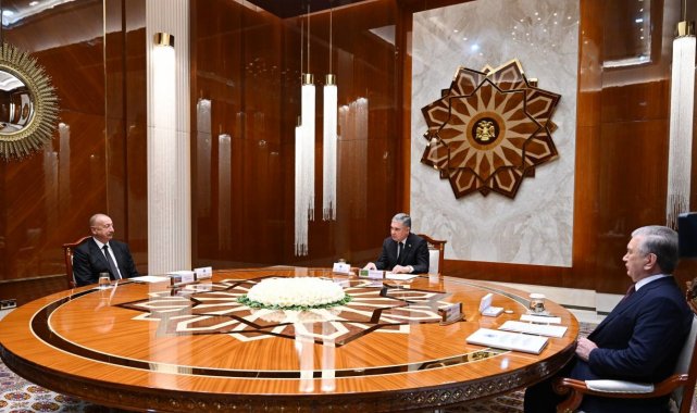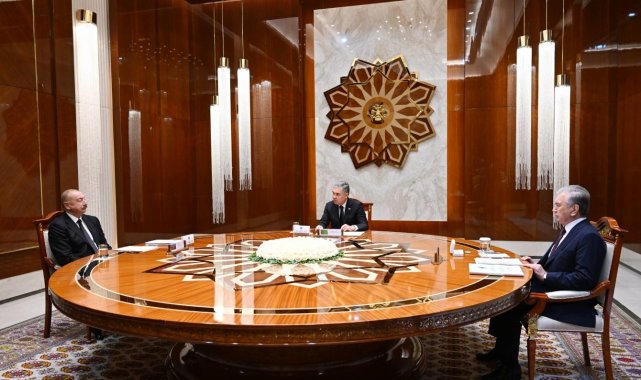 Azerbaycan Cumhurbaşkanı İlham Aliyev, Türkmenistan'ın Türkmenbaşı şehrinde resmi temaslarını sürdürüyor. Aliyev, temasları kapsamında Türkmenistan milli lideri ve Halk Maslahatı Başkanı Gurbangulu Berdimuhammedov ve Özbekistan Cumhurbaşkanı Şevket Mirziyoyev ile üçlü zirvede bir araya geldi. Aliyev, kültürel ve tarihi yakınlığın yanı sıra ortak değerlere sahip olan üç dost ve kardeş ülkenin iş birliği tarihinde yeni bir sayfa açtıklarını belirterek, "Misafirperver Türkmen topraklarında bulunduğum bugün bir kez daha belirtmek isterim ki Türkmenistan, Sayın Gurbangulu Berdimuhammedov'un bilge liderliğiyle sosyo-ekonomik gelişimde önemli başarılar elde etmiş, uluslararası rolünü ve itibarını güçlendirmiştir. Onun modern Türkmenistan'ın gelişimine verdiği katkı, verimli devlet yönetiminin, stratejik vizyonun ve vatana sadakatin örneğidir" ifadelerini kullandı.
