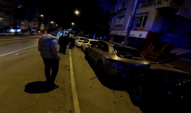 İzmir'in Konak ilçesinde babasının çalıştığı resmi kurum aracını kaçıran alkollü genç, sebep olduğu kazada 5 lüks araca çarptıktan sonra güçlükle durabildi. Kaza sonrası yere oturan alkollü genç, hasar verdiği araçların lüks olduğunu duyunca şoke oldu.