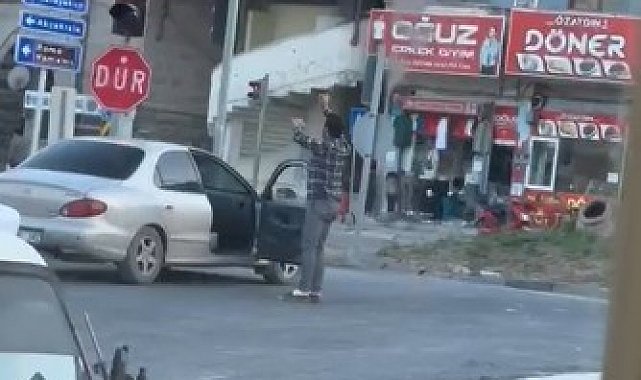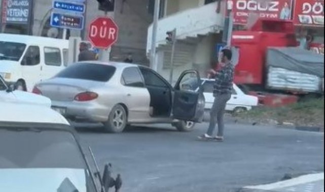 Yozgat'ta alkollü bir kişinin aracından inerek trafikteki ilginç hareketleri cep telefonu kamerasına yansıdı.
