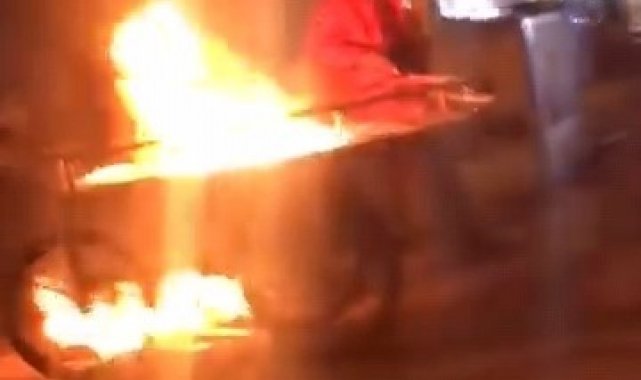 Bursa'nın İnegöl ilçesinde alkollü şahıs ekmek teknesini ateşe verip başında oturdu.