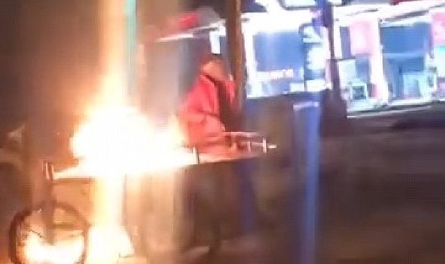 Olay, gece 04.00 sıralarında Orhaniye Mahallesi Ankara Caddesi üzerinde meydana geldi. Alkollü olduğu iddia edilen şahıs, seyyar satış aracını ateşe verdi. Alev alev yanmaya başlayan aracının başında oturan şahıs, görenleri şoke etti. Olay yerine gelen polis ekipleri şahsı uzaklaştırırken itfaiye ekipleri yangını kısa sürede söndürdü. Yangın sonucu araç kullanılamaz hale geldi.