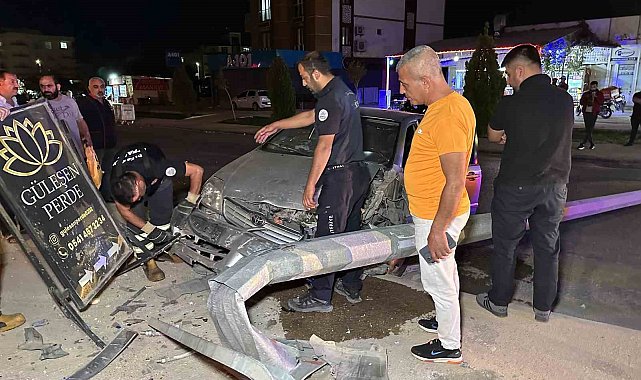 Adıyaman'da alkollü olduğu öğrenilen sürücünün kullandığı otomobil aydınlatma direğini devirerek refüje çıktı.