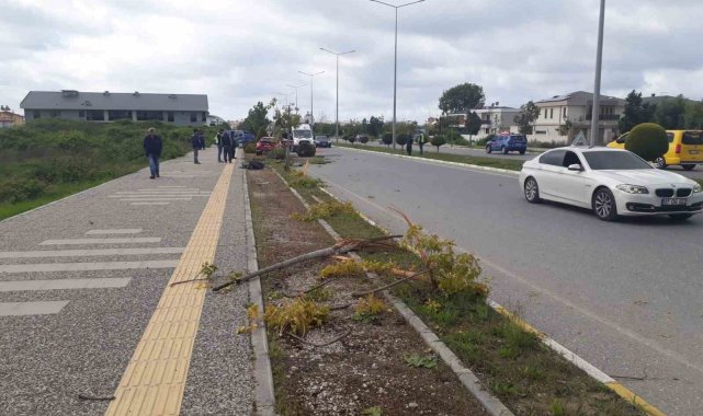 Alkollü sürücü kaldırımdaki ağaçlara çarptı: Devrilen ağaç Rus kadının yaralanmasına neden oldu