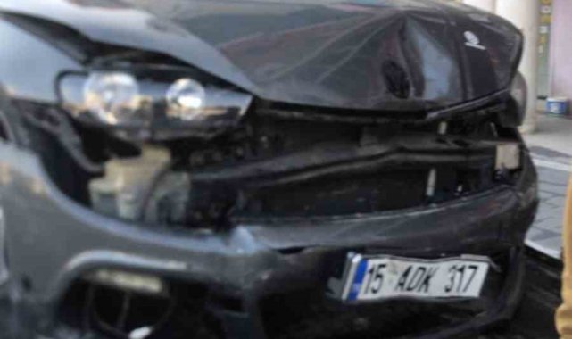 Burdur'un Gölhisar ilçesinde alkollü sürücünün kontrolünden çıkan otomobil önce kaldırıma sonra da alışveriş merkezi önündeki saksılara çarptı. Yaralananın olmadığı kaza anları güvenlik kamerasına yansıdı.