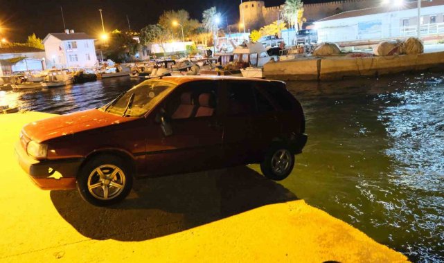 Olay, akşam saat 22.40 sıralarında Çanakkale'nin Bozcaada ilçesinde meydana geldi. Alkollü olduğu iddia edilen sürücü Ş.P., limanda manevra yapmaya çalışırken işletmelerin masalarına çarptı. Ardından geri manevra yapan sürücü limanın ucuna kadar geldi. Geri gelmeye devam eden sürücüyü son anda limandaki bir işletmenin sahipleri fark etti. İşletme sahipleri iki tekeri havada kalan araçtaki sürücüyü bağırarak uyardı. Uyarılar ardından duran sürücüyü çevredeki vatandaşlar araçtan çıkardı. Vatandaşların ihbarı üzerine gelen polis ekiplerince çevrede güvenlik önlemleri alındı. Araç, belediyeye ait bir kepçeyle kurtarıldı.