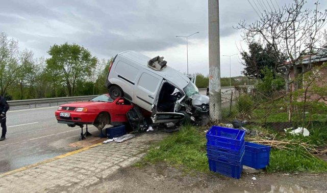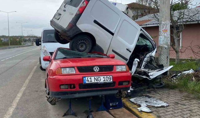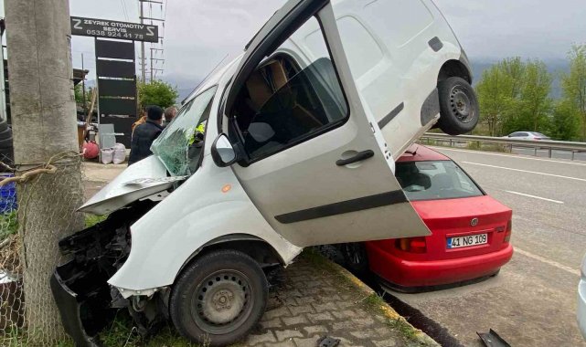 Kaza, Kartepe ilçesi Acısu Mahallesi Sapanca Yolu Caddesi'nde meydana geldi. Edinilen bilgiye göre, M.K. idaresindeki 53 DB 820 plakalı hafif ticari araç, sürücüsünün direksiyon hakimiyetini kaybetmesiyle, oto tamirciye tamir için bırakılan 41 NG 109 plakalı Volkswagen marka otomobilin üstüne çıktı. Hafif ticari araç ardından elektrik direğine çarptı. Durumu fark eden vatandaşlar 112 Acil Çağrı Merkezi'ne haber verdi. İhbar üzerine olay yerine sağlık, polis ve itfaiye ekipleri sevk edildi. Kısa sürede olay yerine gelen itfaiye ekibi, hafif ticari araçta sıkışan yolcuyu sağlık ekiplerine teslim etti. Hafif ticari araçta sürücü ile birlikte bulunan ve yaralanan toplam 3 kişi ilk müdahalenin ardından ambulansla hastaneye kaldırıldı.
