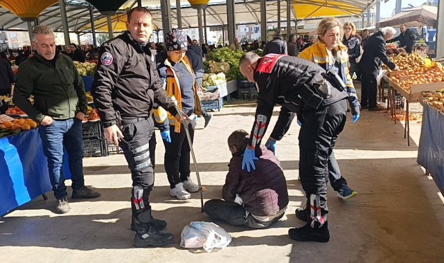 Alkolün etkisiyle pazaryerinde sızdı, vatandaşlar uyandıramayınca polis ve sağlık ekipleri müdahale etti