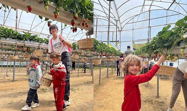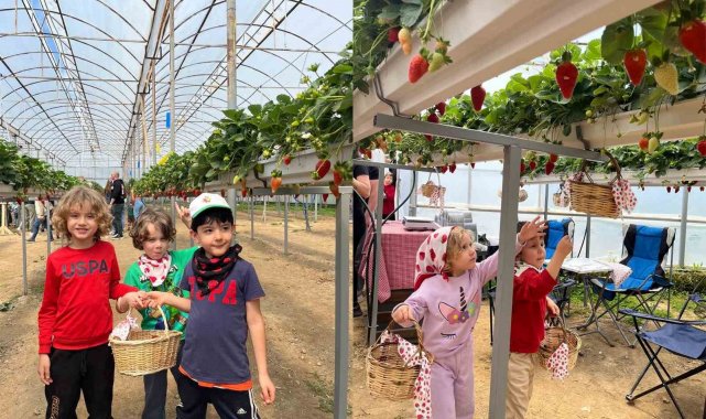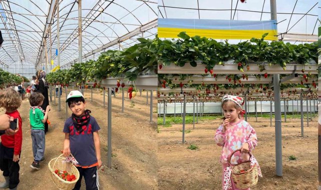Alanya Alaaddin Keykubat Üniversitesi (ALKÜ) Uygulama Anaokulu öğrencileri, Erken Çocukluk Döneminde Çevre Eğitimi ve Okul Dışı Öğrenme Ortamları dersleri çerçevesinde fidan dikip, çilek topladı.
