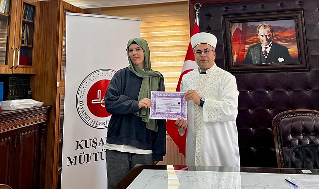 Almanya vatandaşı Tabea Asena Wohlrab, Aydın'ın Kuşadası ilçesinde yapılan ihtida töreniyle Müslüman oldu.