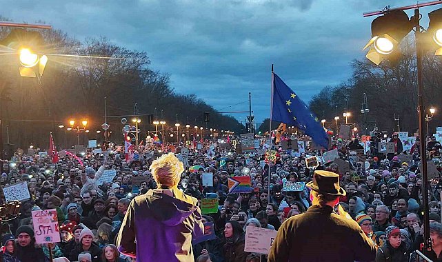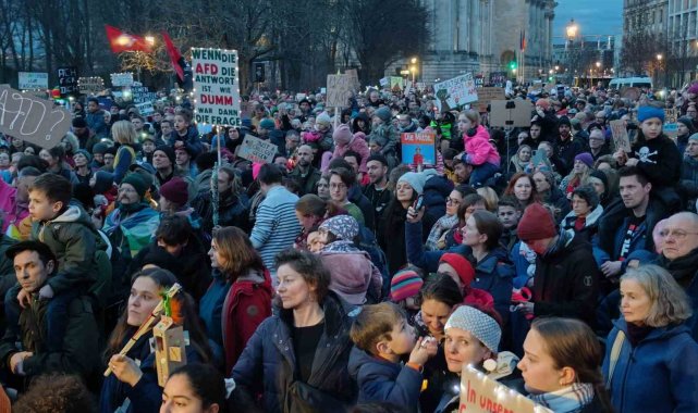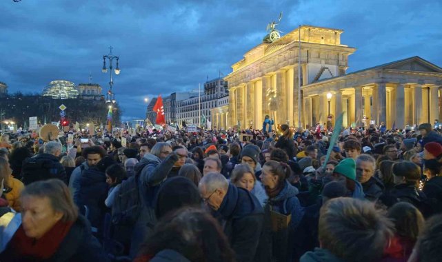 Almanya'da artan ırkçı, faşist ve aşırı sağ eğilimlere karşı protesto gösterisi düzenlendi. "Campact", 'Fridays for Future' ve 'Parents against the Right' gibi sivil toplum kuruluşlarının organize ettiği "ışıklı" protesto eylemine her yaş grubundan yaklaşık 100 bin kişi katıldı. Göstericiler, 23 Şubat Pazar günü gerçekleştirilecek Almanya genel seçimleri öncesinde aşırı sağcı Almanya için Alternatif (AfD) Partisi'nin yükselişine dikkat çekmek ve demokrasiyi korumak adına sokaklara çıktıklarını açıkladı. Bazı protestocular yanlarında getirdikleri mum, meşale ve el feneri gibi nesnelerle, bazı protestocular da ışık zinciri ve cep telefonlarının ışıklarıyla gecenin karanlığını aydınlattı. Akşam saatlerinde düzenlenen gösteride sık sık AfD karşıtı sloganlar atıldı.