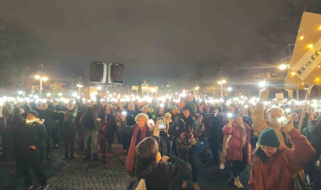 Almanya'nın başkenti Berlin'de yaklaşık 100 bin kişi artan aşırı sağ tehdidine karşı protesto gösterisi düzenlerken, eylemciler, cep telefonlarının ışıklarıyla sembolik bir ışık denizi oluşturarak "yaklaşan karanlığa" dikkat çekti.